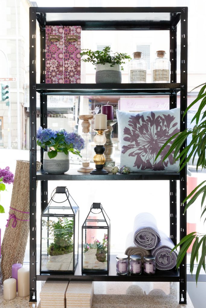 Auch farblich konzentrierten wir uns auf zarte lila und violett- Töne da diese durch saisonale Blumen verkörpert werden. Spannung erhielt das ganze durch Kontraste in schwarz und gold.