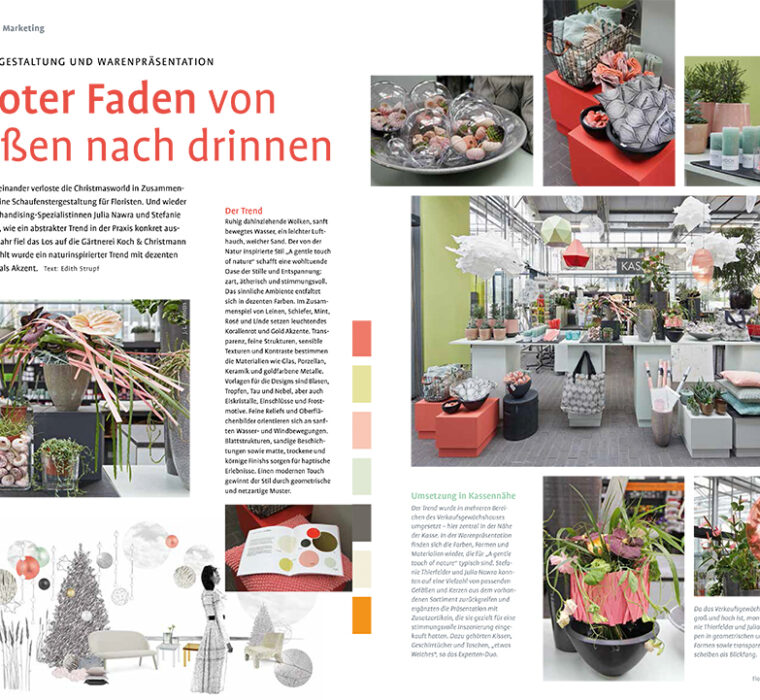Floristen, Gartencenter und Kunden aus dem grünen Fachhandel gewinnen eine Gestaltung von Schaufenster und Innenraum). Ziel und Thematik war die Umsetzung eines der jeweils vier Christmasworld-Trends am POS.