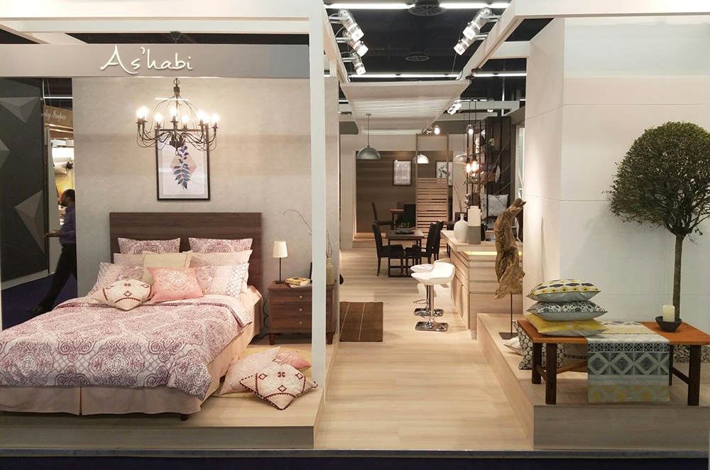 Ausstattung, Dekoration und Gestaltung eines bestehenden Messe-Standes auf der Messe Heimtex in Frankfurt in Zusammenarbeit mit Architekten und Ladenbauern.